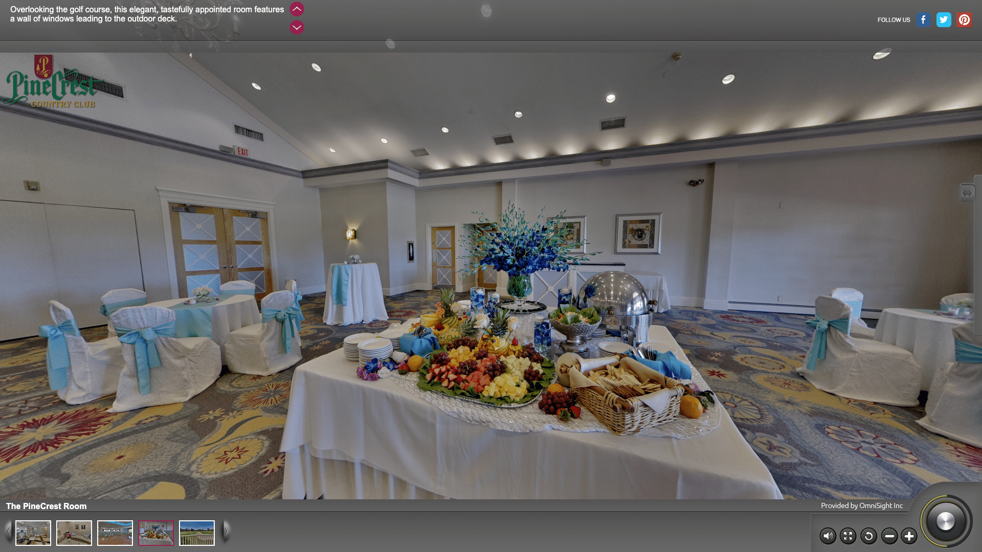 PineCrest County Club has turned to OmniSight several times over the years to illustrate the luxurious and personal touches which make up the club’s special event space. After a recent renovation, OmniSight once again delivered an interactive virtual tour that encapsulated the memorable and charming atmosphere to which the PineCrest Country Club is well known.