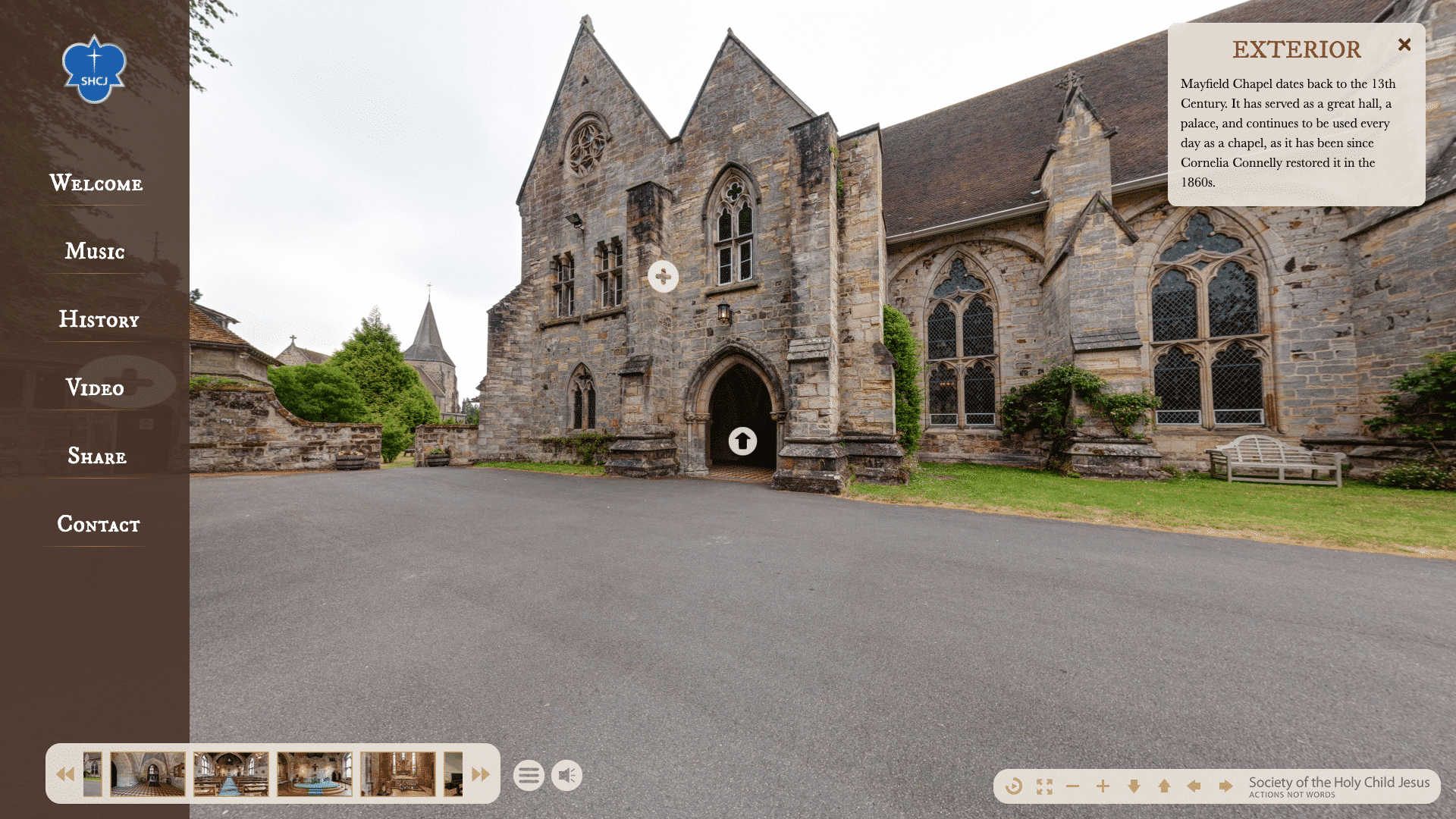 The Society of the Holy Child Jesus is an international congregation of religious women in the Catholic Church. England’s Mayfield Chapel is an historical landmark dating back to the 13th century and fully restored by SHCJ’s founder, Cornelia Connelly, in the 1860’s. The Mayfield Chapel 360 Virtual Tour allows SHCJ’s parishioners’ from around the world to visit the church and learn its historic past.