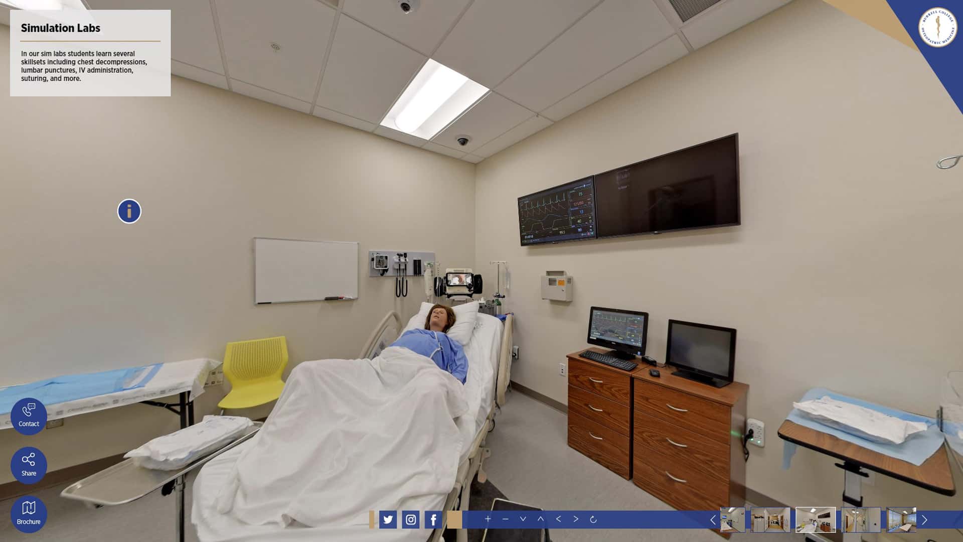 In an effort to drive recruitment during the COVID-19 epidemic, Burrell College of Osteopathic Medicine was seeking a custom branded remote experience. OmniSight’s 360 virtual tour interactive solution helped the admissions department promote the school’s offering to prospective students and facility during a period when the campus had temporarily suspended in-person learning.