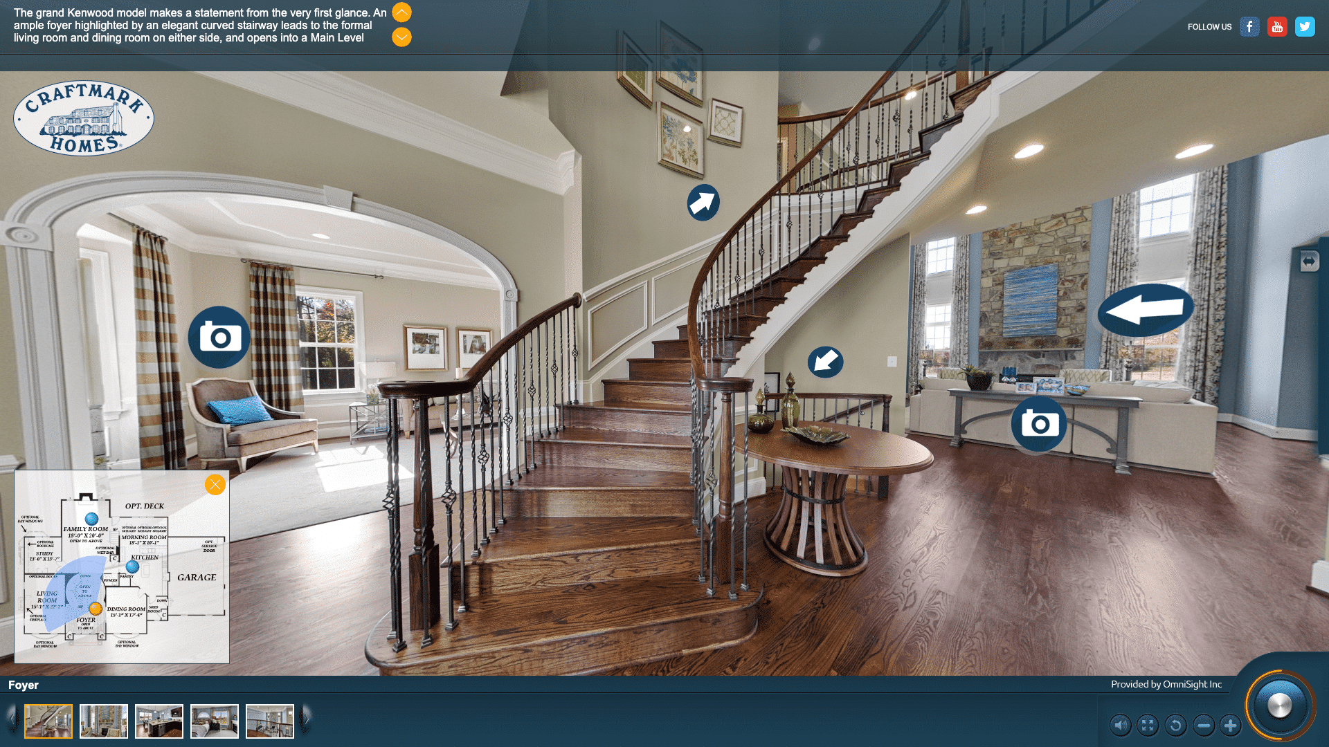 Since 1991, the Craftmark Group has been one of the Washington, D.C. metropolitan area’s largest privately-held homebuilders. OmniSight translated the client’s unique building style into an interactive virtual tour, allowing prospective buyers to preview the original, staged model homes well after they were sold.